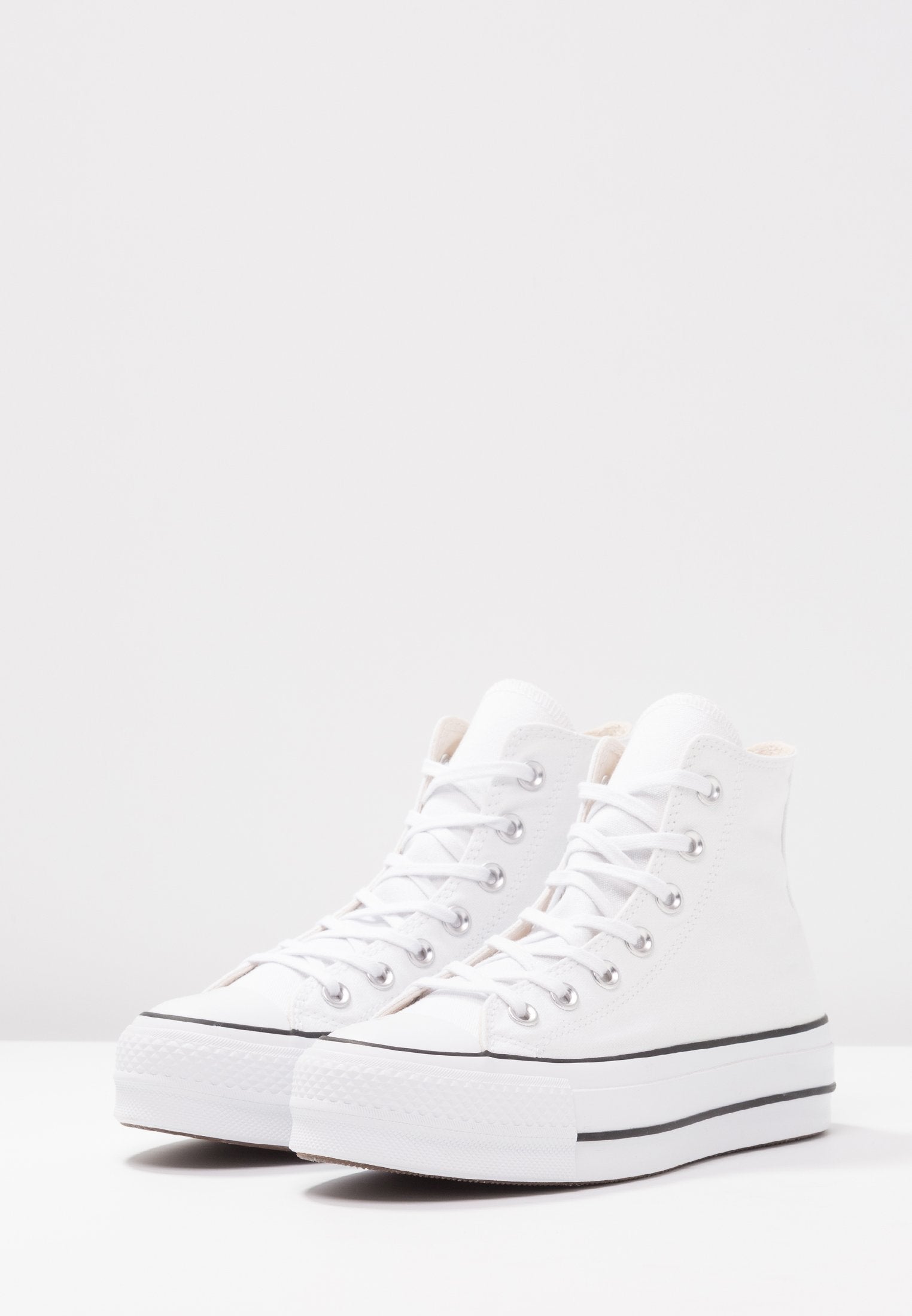 Las Chucks All Star blancas son unas zapatillas clásicas de lona con una suela de goma de plataforma alta. Son duraderas, cómodas y perfectas para un look casual y desenfadado. La parte superior de lona blanca es resistente y la suela de goma blanca proporciona una excelente tracción y altura adicional. Son ideales para cualquier outfit y añaden un toque de estilo a cualquier atuendo.
