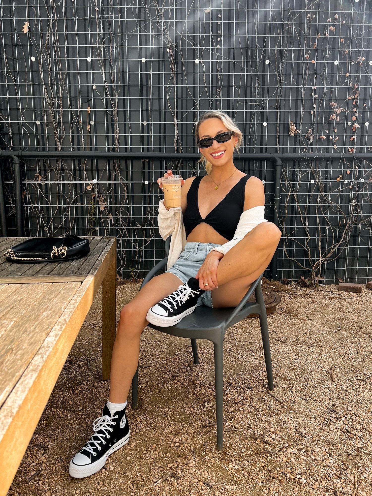 Las Chucks All-black negras son unas zapatillas clásicas de lona con una suela de goma de plataforma alta. Son duraderas, cómodas y perfectas para un look casual y desenfadado. La parte superior de lona negra es resistente y la suela de goma blanca proporciona una excelente tracción y altura adicional. Son ideales para cualquier outfit y añaden un toque de estilo a cualquier atuendo.
