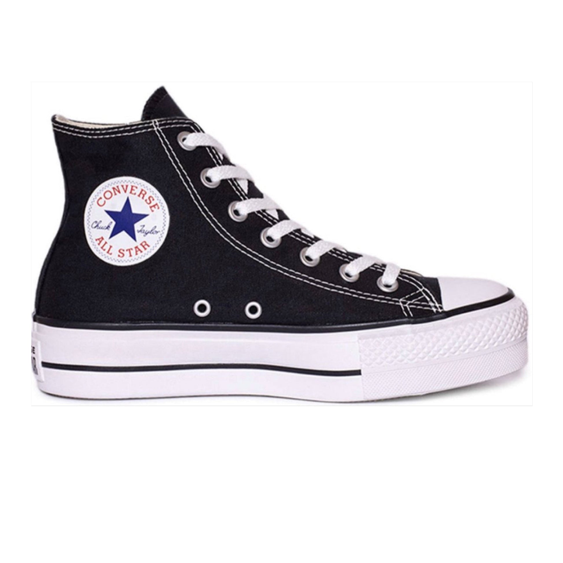 Las Chucks Negras son unas zapatillas clásicas de lona con una suela de goma de plataforma alta. Son duraderas, cómodas y perfectas para un look casual y desenfadado. La parte superior de lona negra es resistente y la suela de goma blanca proporciona una excelente tracción y altura adicional. Son ideales para cualquier outfit y añaden un toque de estilo a cualquier atuendo.